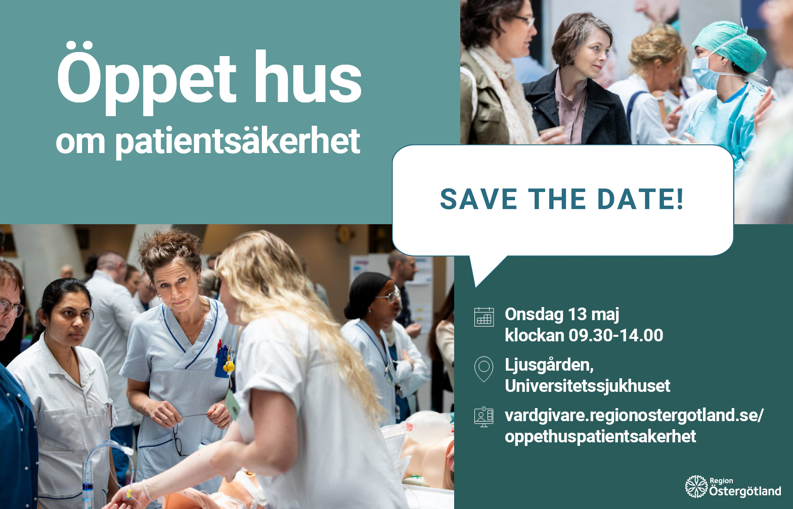 Den 13 maj 2026 bjuder vi in till öppet hus om patientsäkerhet i Ljusgården på Universitetssjukhuset i Linköping. Dagen syftar till att dela ny kunskap, lära av varandra och inspireras för att öka säkerheten för våra patienter.